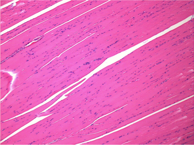 1 mes después de la inyección de Endopeel 0,1 ml en el músculo pretibial derecho.